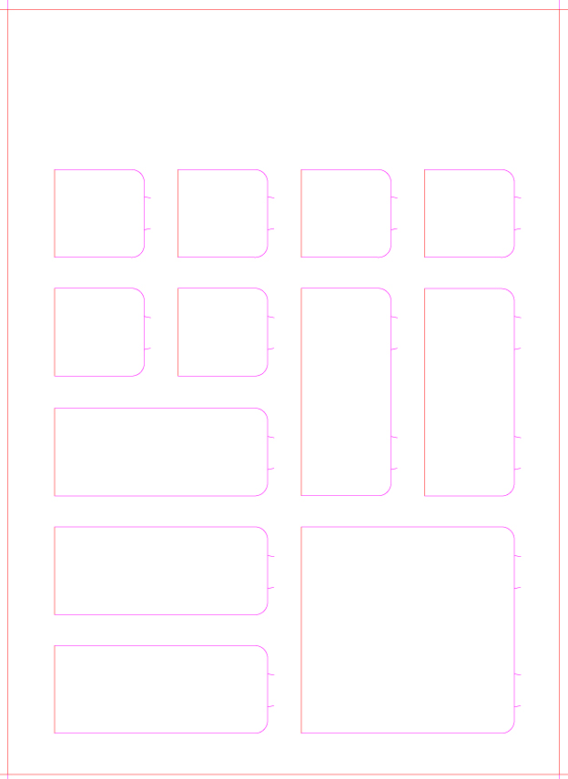 A4 sized, but with 12 doors of varied sizes. Front has a spacious
